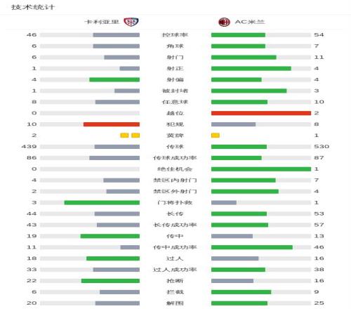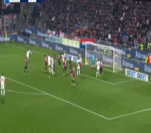 第49分钟,拉比奥右路传中,莱奥禁区后点爆射破门,米兰1-0卡利亚里